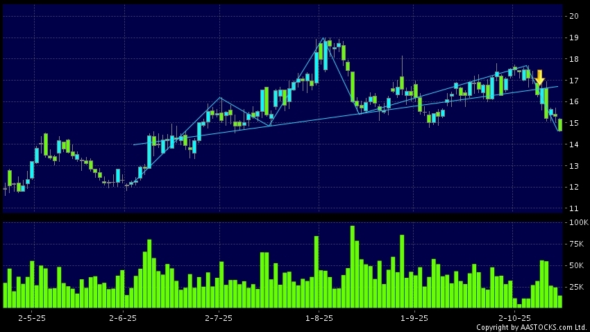 Head Shoulders top is a typical bearish signal, when stock price breaks the supportive level, downtrend would possibly start.(HK stocks quote is delayed for at least 15 mins.Short Selling Data as at 2025-10-17 16:25.)
