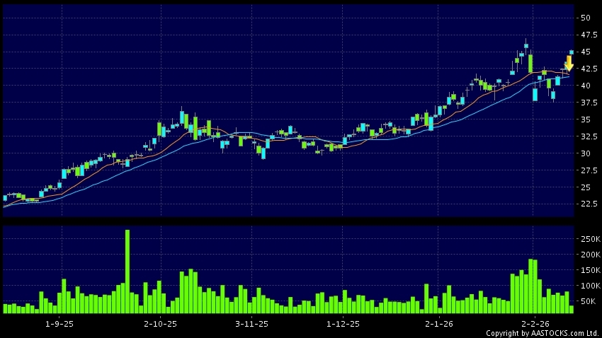 Disclaimer:The information, financial market data, quotes, charts, statistics and / or various technical analysis indicators are automatically generated based on the analyses and interpretations of publicly available information and should be used as references only at your own discretion. Such automatically generated content does not reflect the views or opinions of AASTOCKS.com Limited nor does AASTOCKS.com Limited make any guarantees to their accuracy, completeness, timeliness or correctness. You are advised to consult independent professional advice to verify pricing information or to obtain more detailed market information. Any uses of information or trades executed following the said automatically generated content are taken at your own risk for your own account.