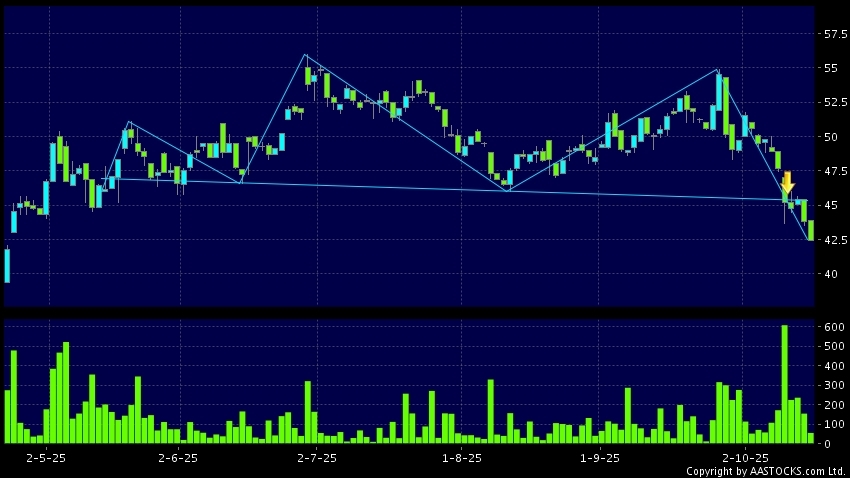 Head Shoulders top is a typical bearish signal, when stock price breaks the supportive level, downtrend would possibly start.(HK stocks quote is delayed for at least 15 mins.Short Selling Data as at 2025-10-17 16:25.)
