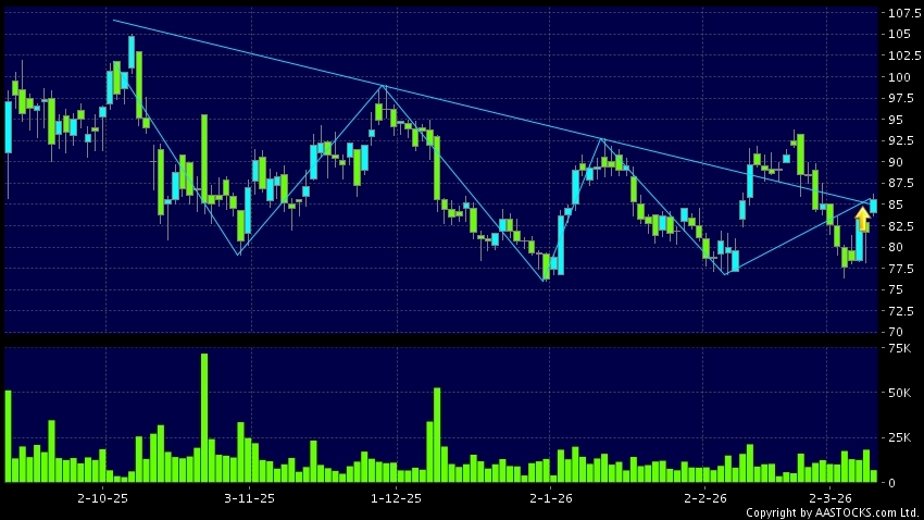 头肩底是典型的利好讯号,当股价升穿阻力线时,升势确认股价将持续上升,技术走势向好。(港股报价延迟最少十五分钟。沽空资料截至 2026-03-10 16:25。)