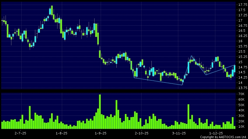 杯柄形突破是一个向好的技术形态,将利好股价走势。(港股报价延迟最少十五分钟。沽空资料截至 2025-12-15 16:25。)