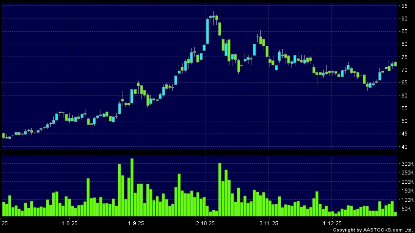 免責聲明:以上金融市場數據、報價、圖表 及/或各種技術分析指標乃根據公開資料分析和演釋自動生成的,僅作參考使用。此類自動生成的內容並不代表AASTOCKS.com Limited的立場。AASTOCKS.com Limited並不保證其準確性、完整性、實時性或者正確性。閣下應諮詢獨立專業意見,以核實定價資料或獲取更詳細的市場信息及須為所有跟隨此類自動生成的內容執行的交易或使用該內容負責。