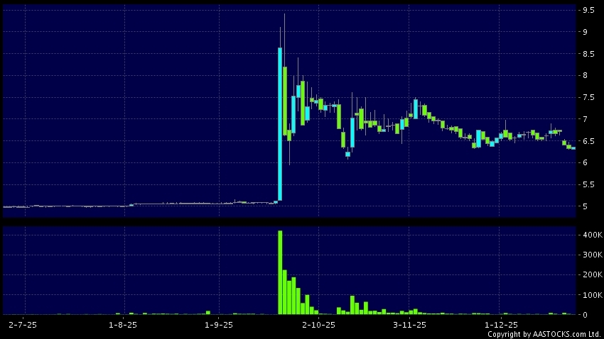 免責聲明:以上金融市場數據、報價、圖表 及/或各種技術分析指標乃根據公開資料分析和演釋自動生成的,僅作參考使用。此類自動生成的內容並不代表AASTOCKS.com Limited的立場。AASTOCKS.com Limited並不保證其準確性、完整性、實時性或者正確性。閣下應諮詢獨立專業意見,以核實定價資料或獲取更詳細的市場信息及須為所有跟隨此類自動生成的內容執行的交易或使用該內容負責。