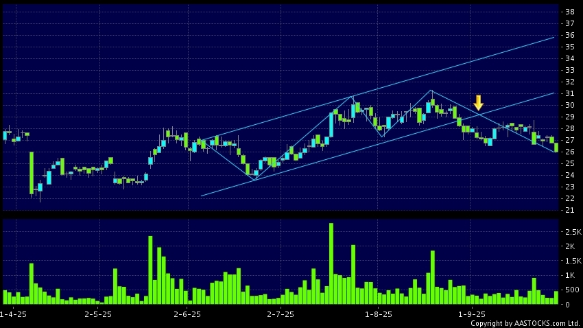 區域突破指股價在過去的一段時間只在一個範圍在內活動,然後股價下跌作出突破,跌穿區域的底部,技術走勢偏軟。(港股報價延遲最少十五分鐘。)