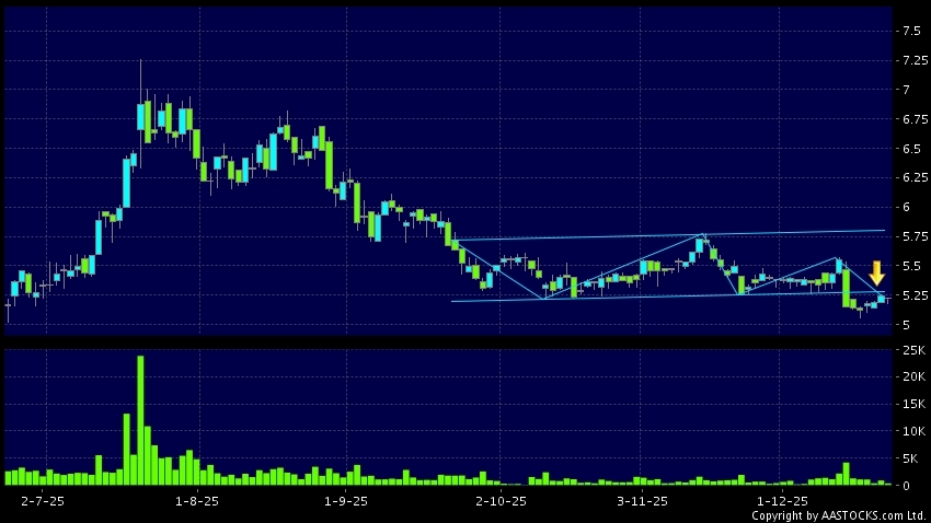 免責聲明:以上金融市場數據、報價、圖表 及/或各種技術分析指標乃根據公開資料分析和演釋自動生成的,僅作參考使用。此類自動生成的內容並不代表AASTOCKS.com Limited的立場。AASTOCKS.com Limited並不保證其準確性、完整性、實時性或者正確性。閣下應諮詢獨立專業意見,以核實定價資料或獲取更詳細的市場信息及須為所有跟隨此類自動生成的內容執行的交易或使用該內容負責。