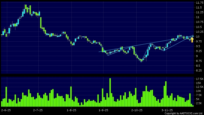 JIANGSU EXPRESS(00177.HK) appears an upside breakout, rose above the neckline. Last printed at 10.040; rose 0.803%; on volume of 1.16M shares and turnover of $11.70MRecent Performa...
