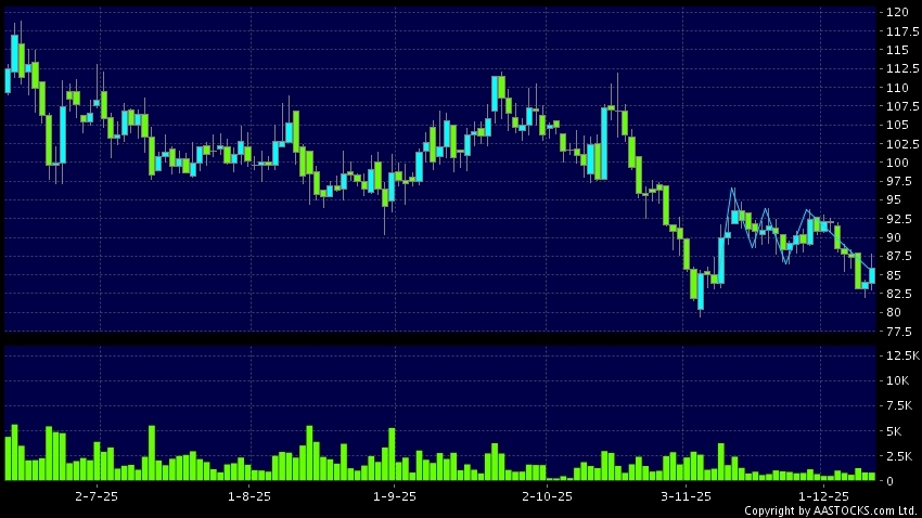 Disclaimer:The information, financial market data, quotes, charts, statistics and / or various technical analysis indicators are automatically generated based on the analyses and interpretations of publicly available information and should be used as references only at your own discretion. Such automatically generated content does not reflect the views or opinions of AASTOCKS.com Limited nor does AASTOCKS.com Limited make any guarantees to their accuracy, completeness, timeliness or correctness. You are advised to consult independent professional advice to verify pricing information or to obtain more detailed market information. Any uses of information or trades executed following the said automatically generated content are taken at your own risk for your own account.