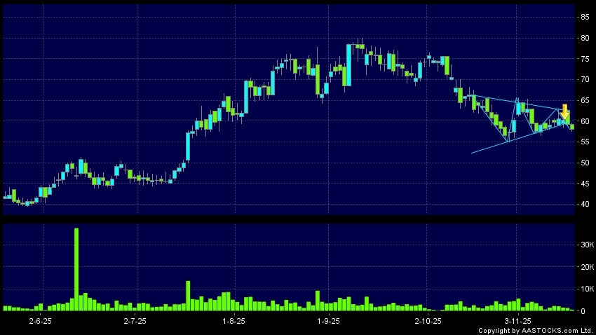 Triangle Breakout means the volatility of price movement is decreasing, stock price finally broke the bottom of triangle. A downward trend will start.(HK stocks quote is delayed for at least 15 mins.Short Selling Data as at 2025-12-12 16:25.)