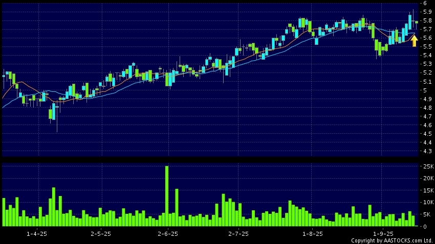 黄金交叉是一个利好讯号,指股价的短期移动平均线升穿长期移动平均线,例如50天线升穿250天线,在图表上构成交叉的形状。股价通常会上升形成一个上升趋势,技术走势向好。(港股报价延迟最少十五分钟。沽空资料截至 2025-10-10 16:25。)