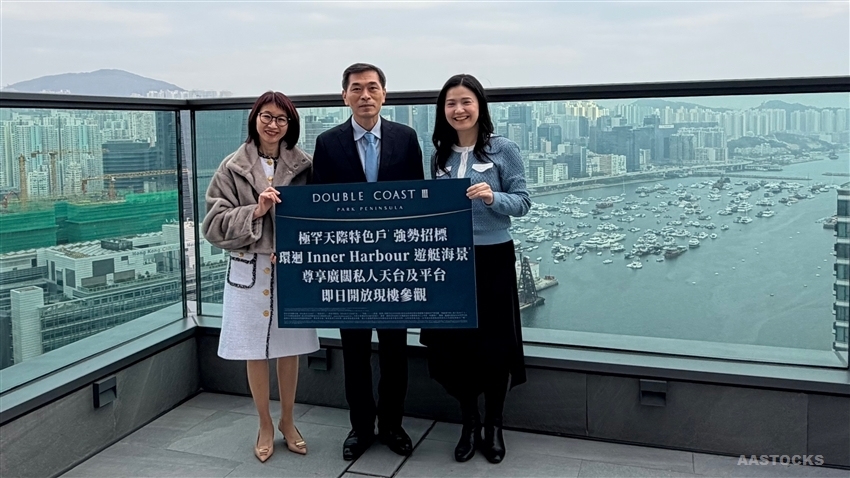 由会德丰地产、恒基地产(00012.HK) +0.900 (+2.913%) 沽空 $1.42亿; 比率 46.829% 、中国海外(00688.HK) +0.260 (+1.894%) 沽空 $7.37千万; 比率 32.581% 及新世界(00017.HK) +0.230 (+2.295%) 沽空 $1.67千万; 比率 9.554% 合作发展,位於启德DOUBLE COAST III今日(3日)开放天际特色户予传媒参观,并最快周日(8日)以招标形式发售。