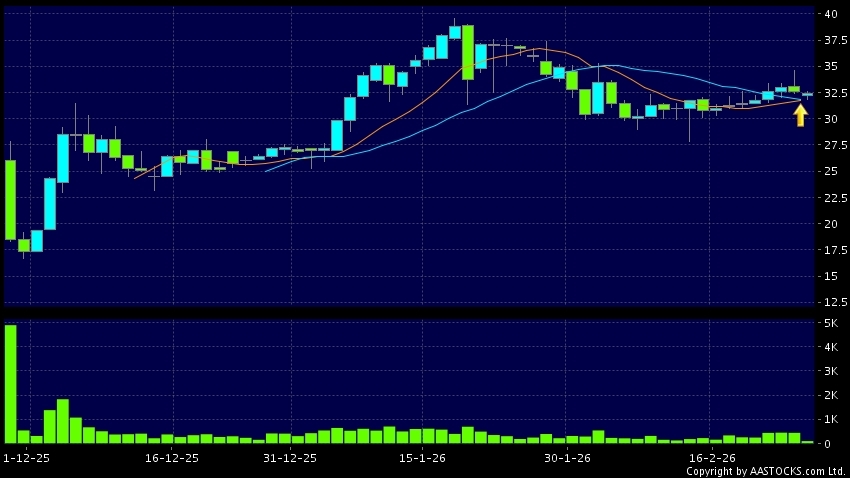量化派(02685.HK) 0.000 (0.000%) 10天移动平均线升穿20天移动平均线,出现黄金交叉。现价报32.400,下跌0.613%,成交量10.60万股,成交额3.42百万。