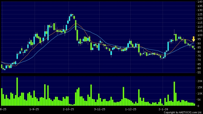 免责声明:以上金融市场数据丶报价丶图表 及/或各种技术分析指标乃根据公开资料分析和演释自动生成的,仅作参考使用。此类自动生成的内容并不代表AASTOCKS.com Limited的立场。AASTOCKS.com Limited并不保证其准确性丶完整性丶实时性或者正确性。阁下应谘询独立专业意见,以核实定价资料或获取更详细的市场信息及须为所有跟随此类自动生成的内容执行的交易或使用该内容负责。