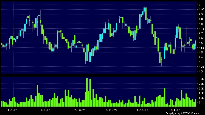 免責聲明:以上金融市場數據、報價、圖表 及/或各種技術分析指標乃根據公開資料分析和演釋自動生成的,僅作參考使用。此類自動生成的內容並不代表AASTOCKS.com Limited的立場。AASTOCKS.com Limited並不保證其準確性、完整性、實時性或者正確性。閣下應諮詢獨立專業意見,以核實定價資料或獲取更詳細的市場信息及須為所有跟隨此類自動生成的內容執行的交易或使用該內容負責。