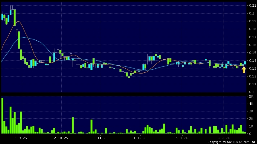 久久王(01927.HK) +0.001 (+0.741%) 10天移動平均線升穿20天移動平均線,出現黃金交叉。現價報0.139,上升2.963%,成交量22.50萬股,成交額3.06萬。