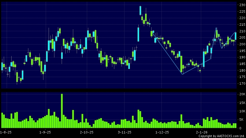 免責聲明:以上金融市場數據、報價、圖表 及/或各種技術分析指標乃根據公開資料分析和演釋自動生成的,僅作參考使用。此類自動生成的內容並不代表AASTOCKS.com Limited的立場。AASTOCKS.com Limited並不保證其準確性、完整性、實時性或者正確性。閣下應諮詢獨立專業意見,以核實定價資料或獲取更詳細的市場信息及須為所有跟隨此類自動生成的內容執行的交易或使用該內容負責。